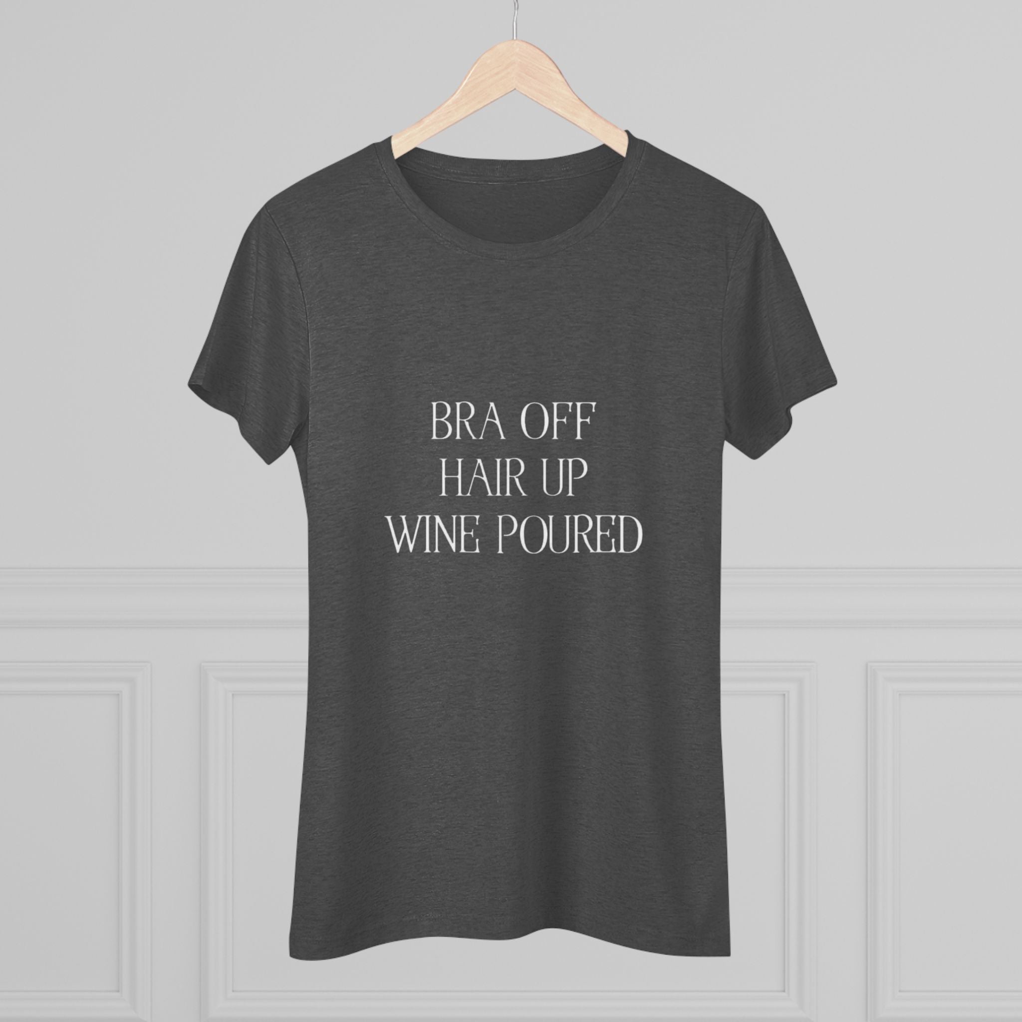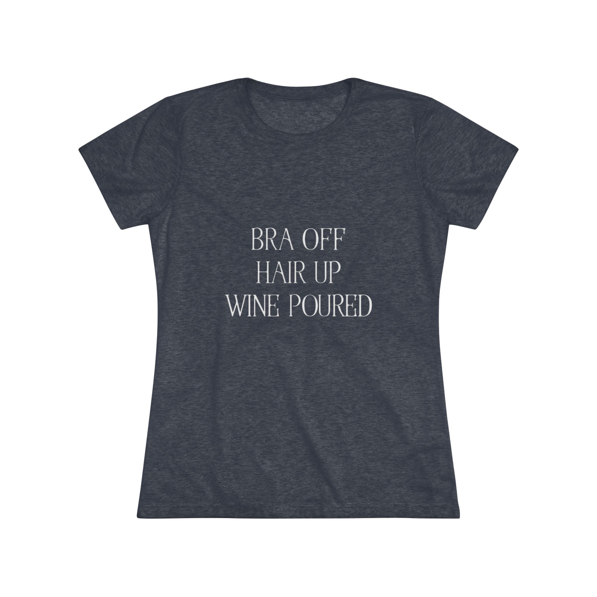 Women's Bra off, Hair up, Wine poured Triblend Tee